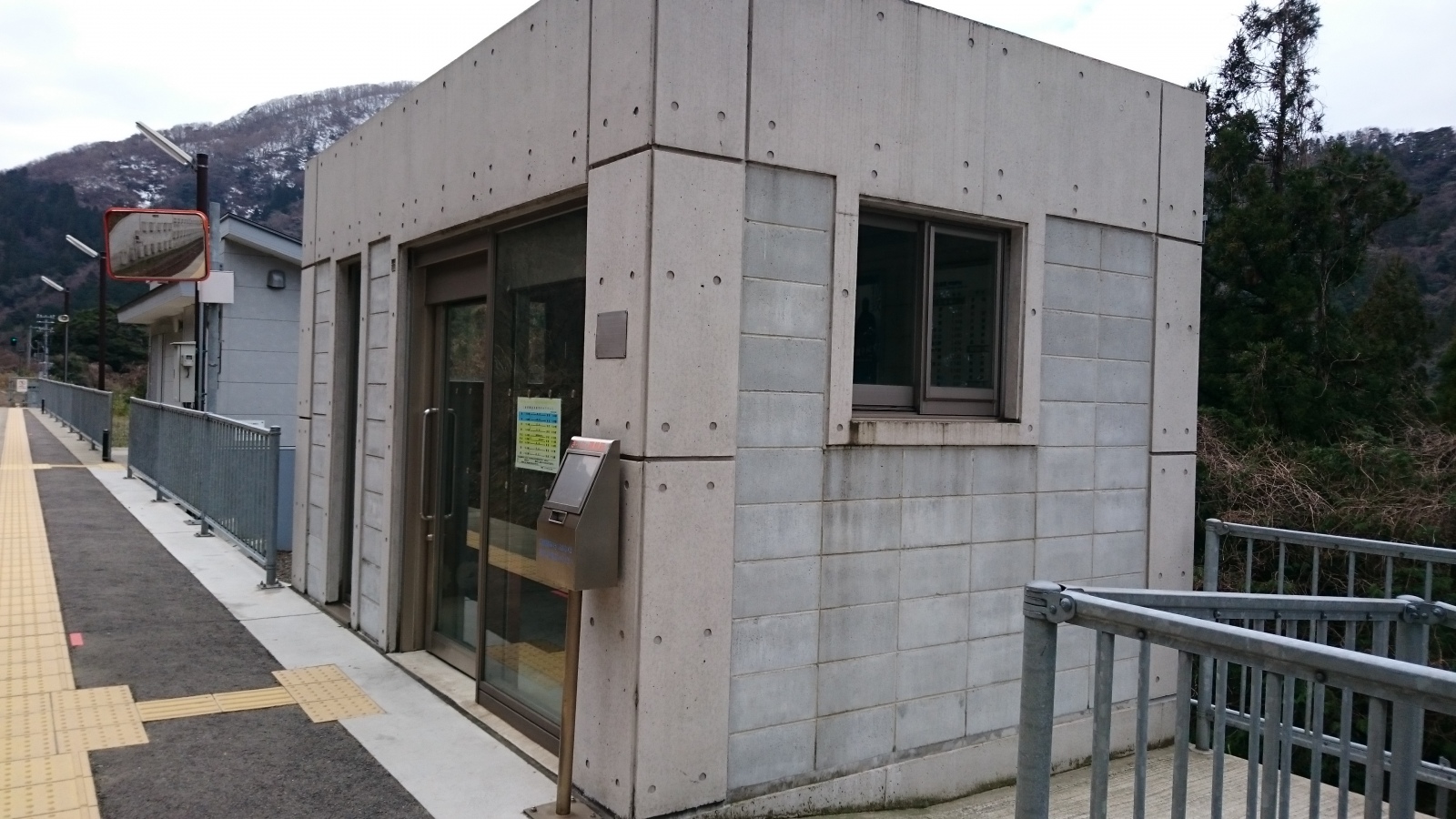 待合室はなんとも武骨なコンクリート製。まあ、風雨には強そうだ。