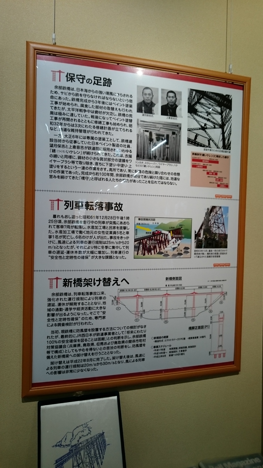 道の駅の一角にも余部鉄橋のあゆみコーナーがあって、パネルなどが展示されていました。