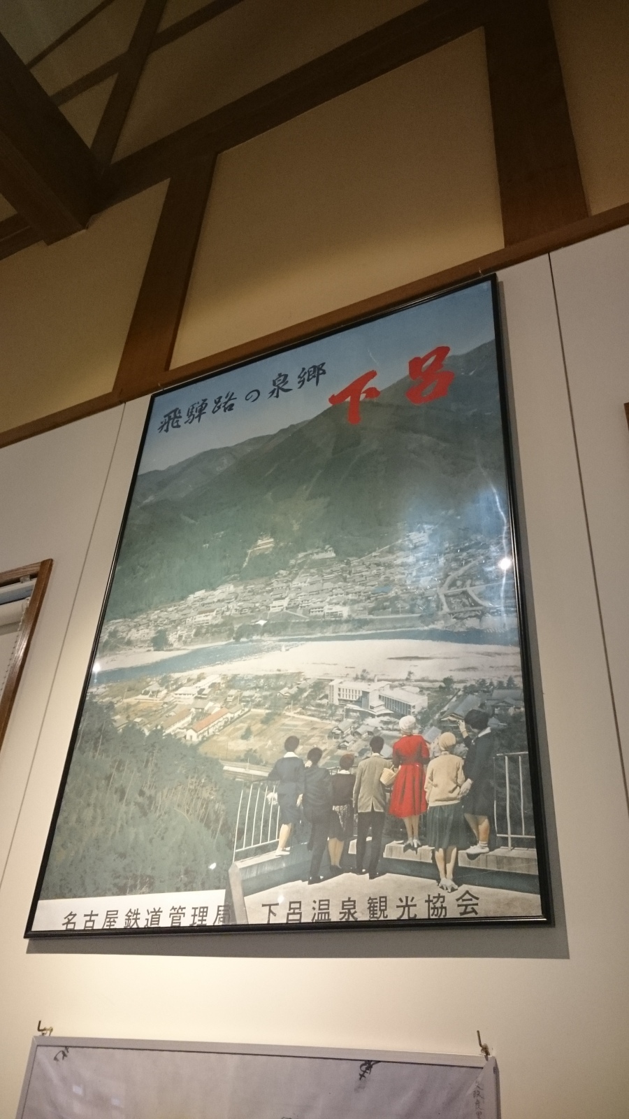温泉博物館3 上の方にはずらりと温泉地ポスターが並んでいます。名古屋鉄道管理局、国鉄の下呂ポスターを発見。うちの肉牛が「名古屋鉄道」の文字に反応したのか「へー、名鉄のポスターだ」とか言ってたけど違います。ここ、めーてつ走ってない。いや、走ってたっていうか乗り入れてた時も確かにあるけどこれは違う。