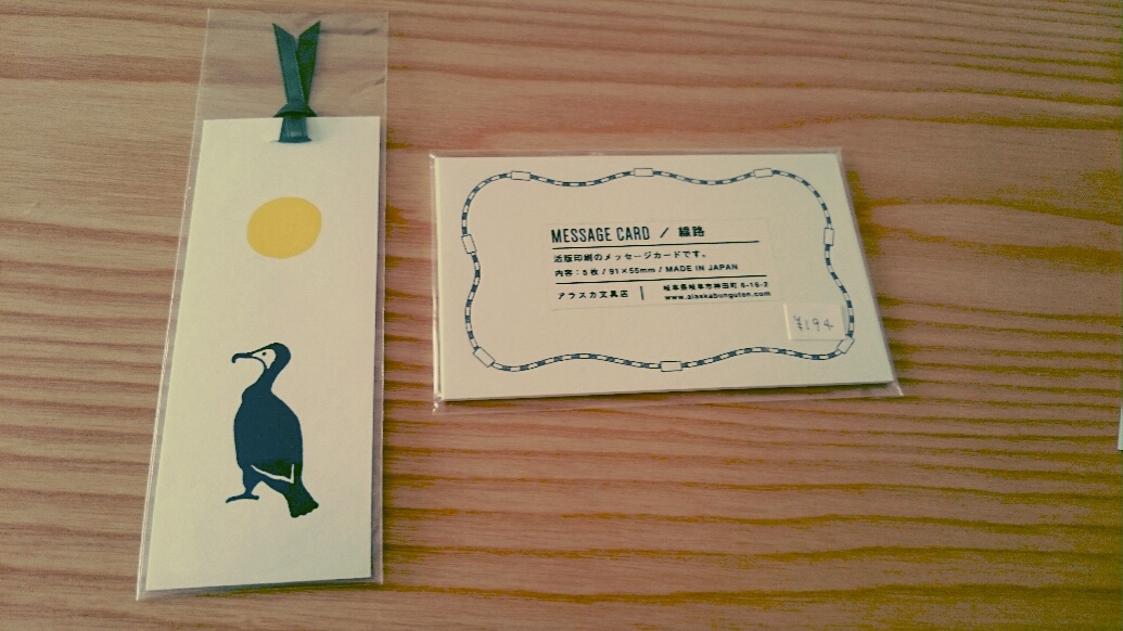 宝箱のような店内 前々から気になっていたアラスカ文具店までぶらり散歩。オリジナルのカードやメモ帳など色々あって、それがまたシンプルでかわいいんだなぁ。路線のカードには大阪環状線の駅名を入れてみたいところ。