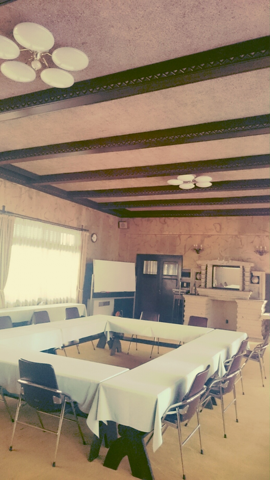 やけに重厚な階段を上がっていくと、そこに会議室が。